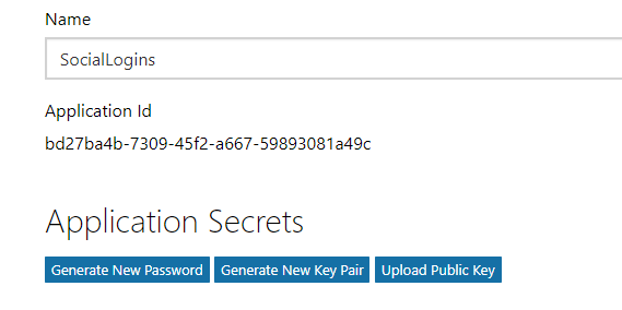 With the Application Secret generated and the Application Id showed on top of the Application Secrets section, fill the Microsoft panel present in your ONR (HML)'s subscription External Providers tab: